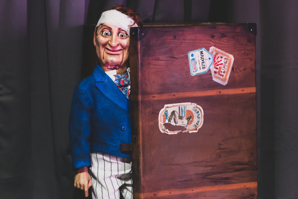 Tre dukkeførere prøver å finne ut hva som egentlig skjedde da en av dem arvet en gammel buktalerdukke – med en merkelig og urovekkende historie. Forestillingen er som et mareritt du ikke helt vil våkne fra: morsom, ubehagelig og hypnotisk på samme tid. Her møter du en mislykket magiker, en sjalu dukke med kniv – og spørsmålet om hvem som egentlig trekker i trådene: mennesket eller dukken?
