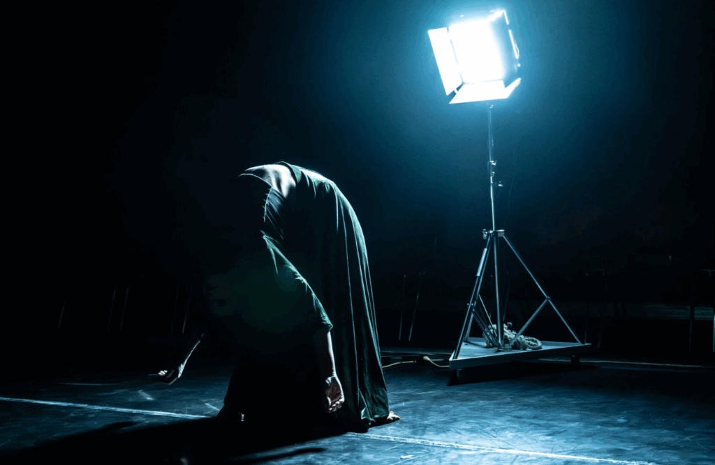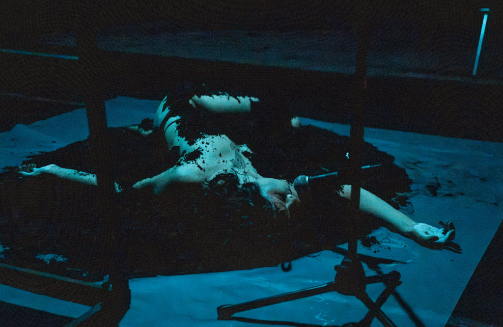 Det første som møter meg når jeg går inn teltåpningen for å se The Shedding er en halvnaken kvinne delvis begravd i jord. Scenen er mørk og man kan så vidt skimte henne, men hun er ikke til å unngå. Hun ser forlatt ut, som om hun er blitt kastet som søppel i en grøft. Eller prøvd å bli begravet, men at gjerningsmennene har hatt det travelt og ikke tatt seg bryet med å gjøre jobben ferdig. Dette er begynnelsen på en forestilling som paralyserte meg fra start til slutt, som fremdeles gnager på innsiden av hodet mitt og som enda ikke har sluppet klørne fra kroppen min.