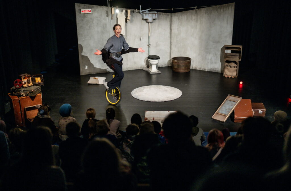 De befinner seg nede i en kjeller med Fridas gamle sirkus utstyr og i løpet av forestillingen sjonglerte de både med baller og kniver, kastet fargerike ringer og syklet på en-hjuls sykkel. Å gjøre alle disse gamle sirkuskunstene gir Frida håp om fremtiden og muligheten til å ta opp karrieren.
